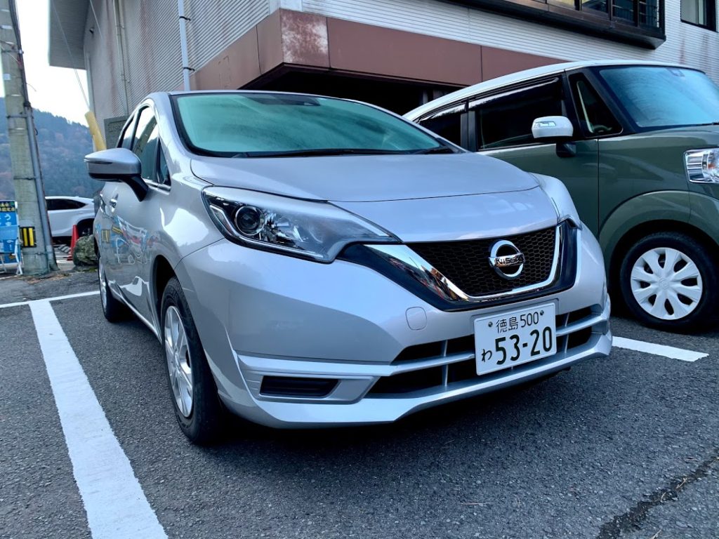 今回の旅のツレ、日産ノート。レンタカーはキャンペーン中の安いのを選ぶと、これかマツダデミオかのケースが多い気がする。ノートのほうが乗り心地がやや硬めかな。前身のマーチもそうだったよな。
