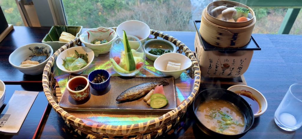 朝餉。昨日の夕食がとてもおいしかったから。朝も和食にして正解だなと、しみじみ思う。う〜む。味噌汁を1口飲んだ瞬間から。昨日のあの出汁が蘇る。山の中の食材ばかり。こういうのもたまにはいいな。