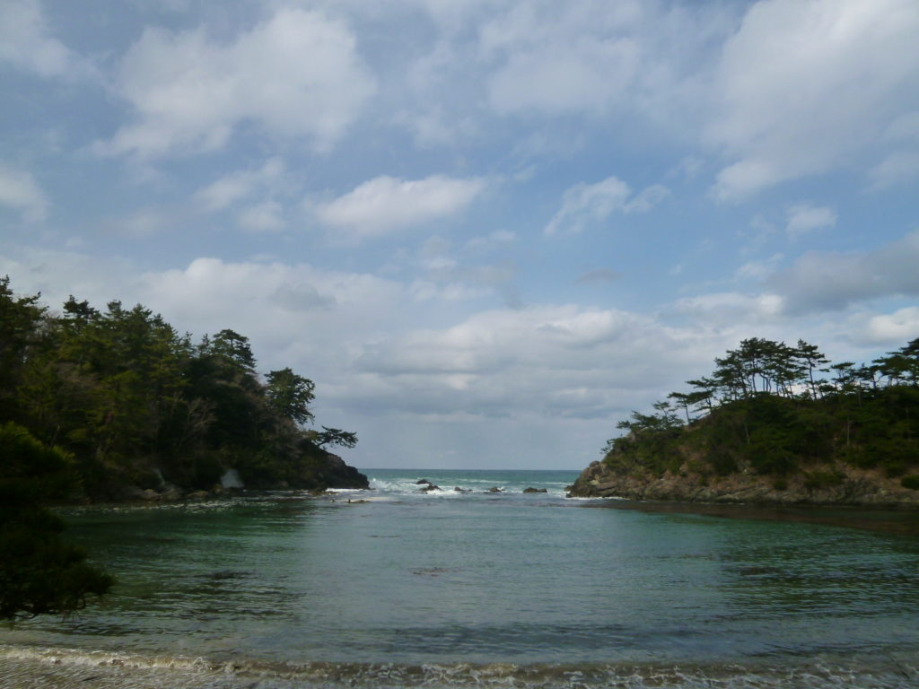 日本海、若狭湾。きれいな海。このあたりは、海水浴場も多いらしい。カフェオレ色の砂。海水の透明度が、高そうだ。。。