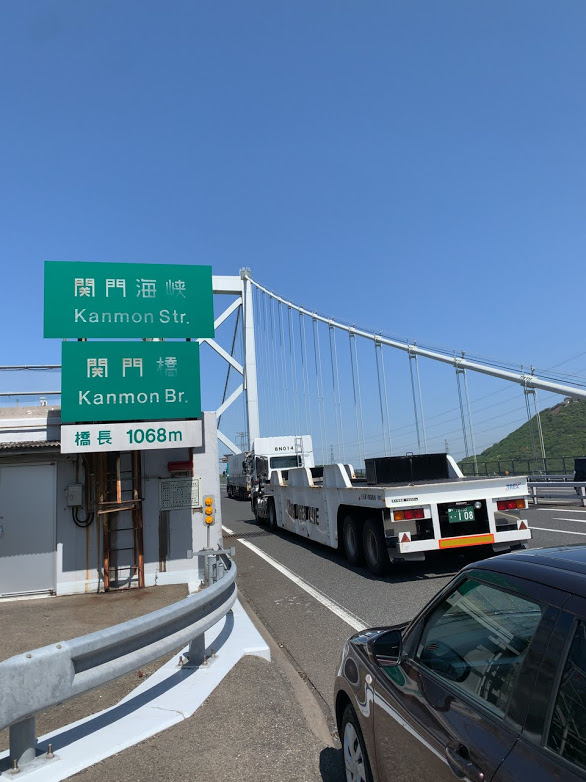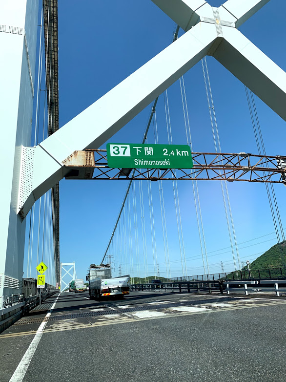 関門橋を渡る。向こうは本州、下関だ!ドキドキするな。S&GのBridge water troubled waterが頭をよぎるな・・・