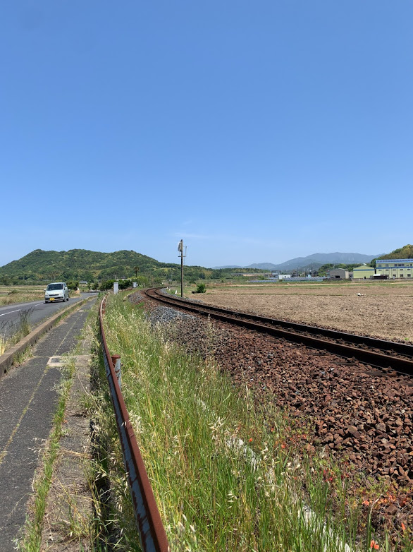 下関北バイパスが終わり、一転してのどかな国道へ。しばらくすると道路はやや内陸にはいり、そのタイミングでテツに寄り添うように走る。これは・・・山陰本線だな。たまらない。最高だ…