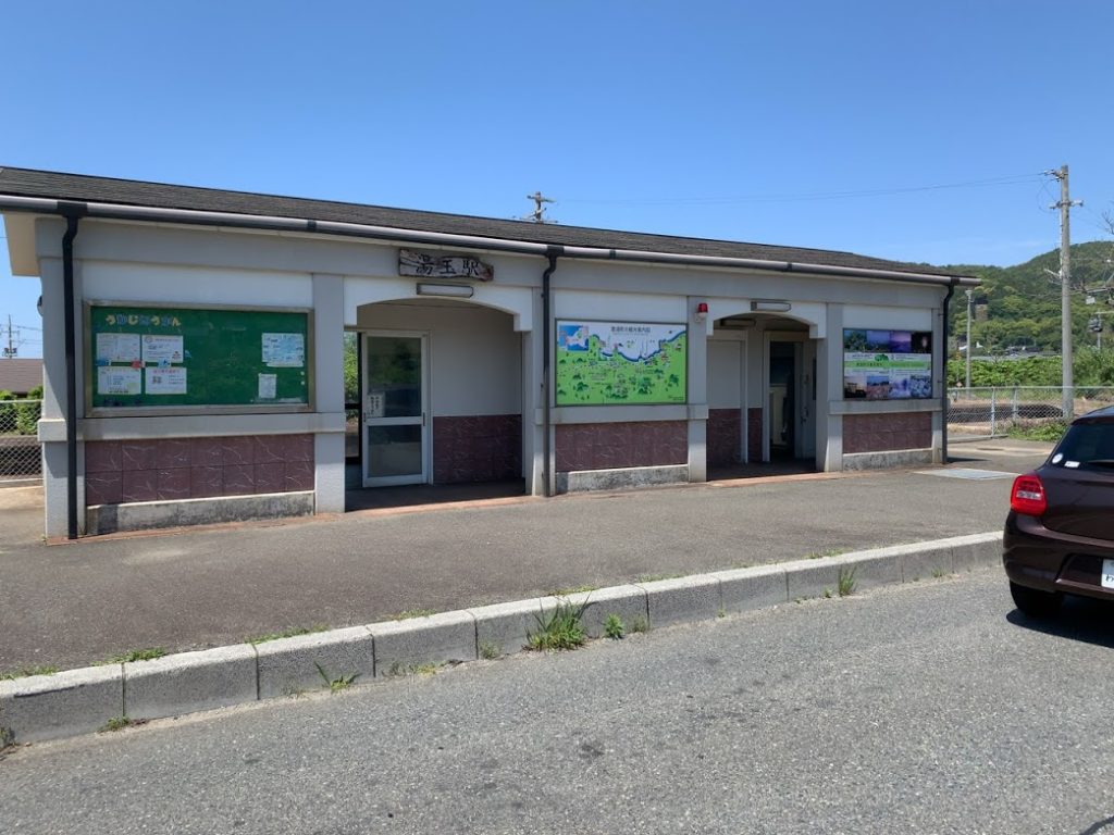 しばらくすると、湯玉という無人駅に到着。もう少しここに早く到着しいれば、駅に泊まっているキハ47に出会えたんだな。