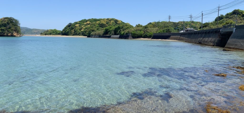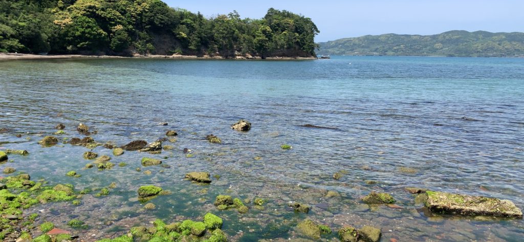 日本海を北上していくと突き当り、東側のコースを進むことになる。ここは長門市近くの日本海。海の色がとてもきれいだ。最高・・・それしか言えない。