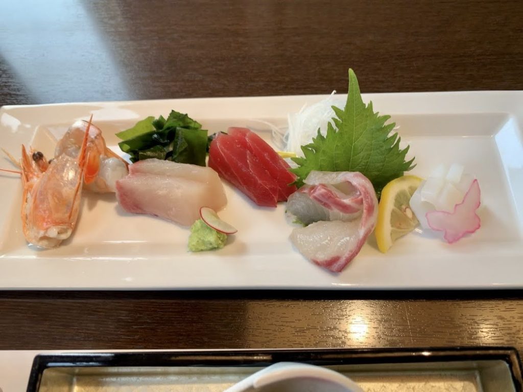 まずは前菜。旬の味覚盛りやらお造りやら。美味しな。ビールとよく合う。