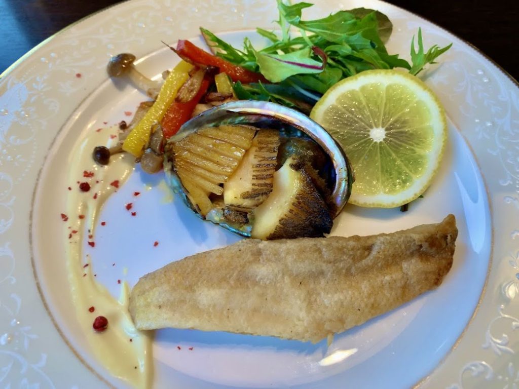 アワビと甘鯛の焼き物。甘鯛は鱗が柔らかいので、そのまま食べることができるんですよと。なるほど・・・確かにうまし。久しぶりだな、甘鯛はのどぐろとともに、山陰・日本海をイメージさせるよな。美味しだったけどな。
