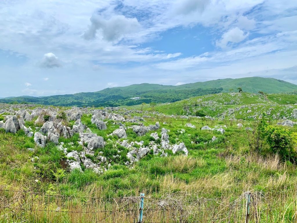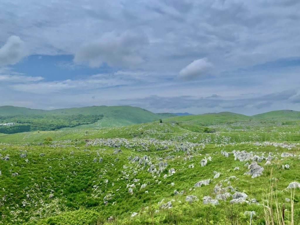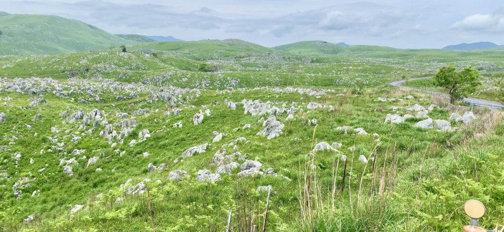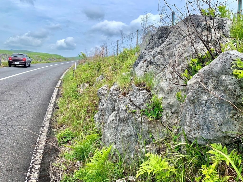 位置関係を。秋芳洞を散策したので、ここからはレンタカーでカルストロードへ。カルスト台地である秋吉台を目指す。やはり観光案内所の方曰く。「秋吉台に行くには、秋芳洞からエレベーターで昇って展望台見学する方法もあるけど。車で来ていらっしゃるんなら、それは車で巡った方が見ごたえありますよ」とのことだった。