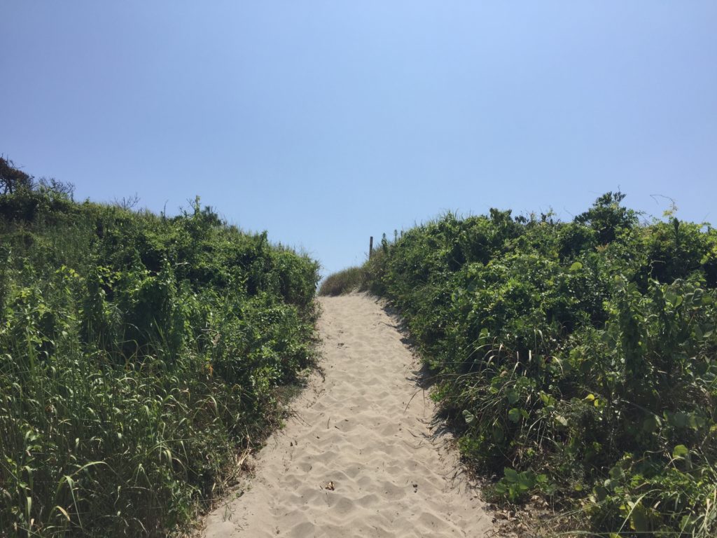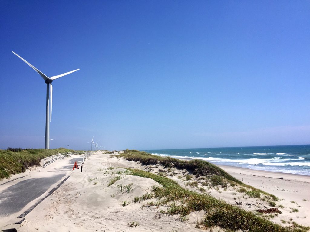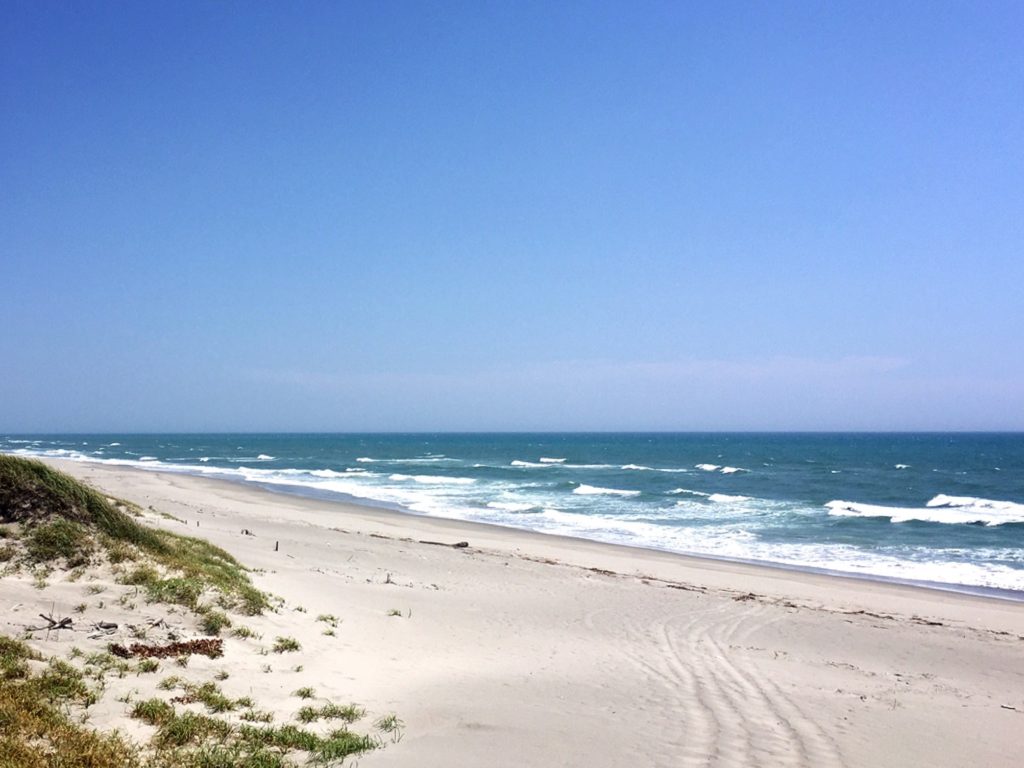 遠州灘の砂丘。写真の通りで…ちょっとはっとするくらいきれいな、夏の海。そしてそして、和歌山は南紀白浜をイメージさせるような、骨白の色の砂浜だった。