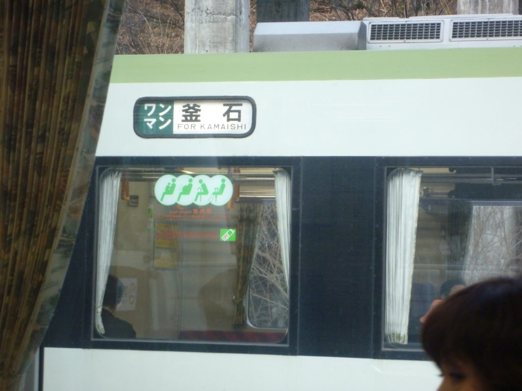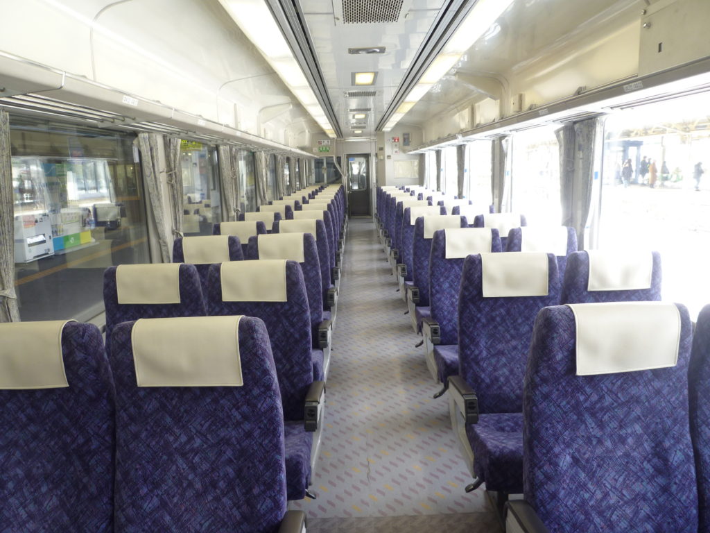 これは快速「はまゆり」の車内。基本的には花輪線と同じ鶯色の気動車だが、快速用にこしらえたのか、リクライニングシート車両もあるんだな。これがなかなか快適。前後のシート幅も結構あるしな。