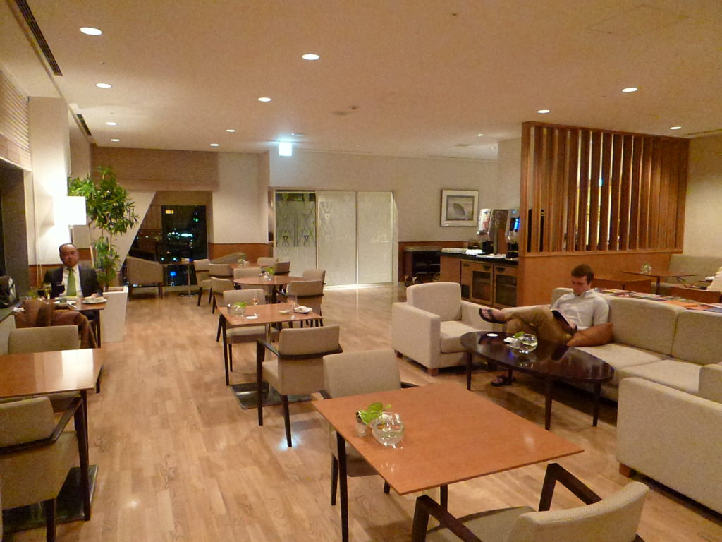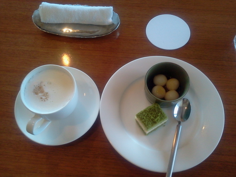 仕事前、早々にチェックインしクラブラウンジに。まだお酒は飲めないので、カプチーノと和風甘味をいただく。う~む。実に、悪くないな。