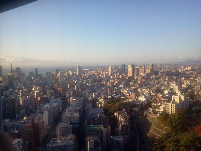 部屋の窓からの景色はこんな感じ。遠くに神戸港が見える。きれいだよな。