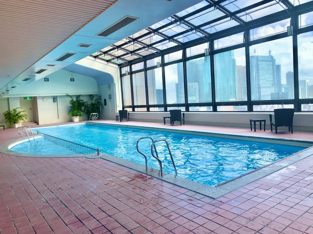 ホテルのプール。何度か行ったが、最高だった。晴れてくると、外から日差しが入ってきて、プールのムードがいい感じになる。最高な。