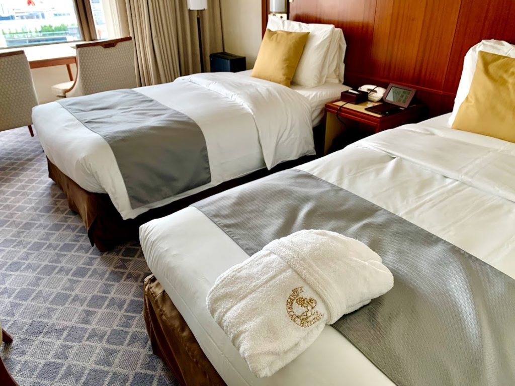 帝国ホテルのバスロープ。最高だった。これまで泊まったホテルの中で、最も生地が厚い。今治タオルを使っているな。おかげでホテル滞在時には、お風呂入ってもバスタオルを使うことはなく、バスロープを着るだけ。すると1~2分で、体についたお湯がきれいに落ちてしまう。とにかく、「拭く」という行為が不要なのに、驚かされたな。