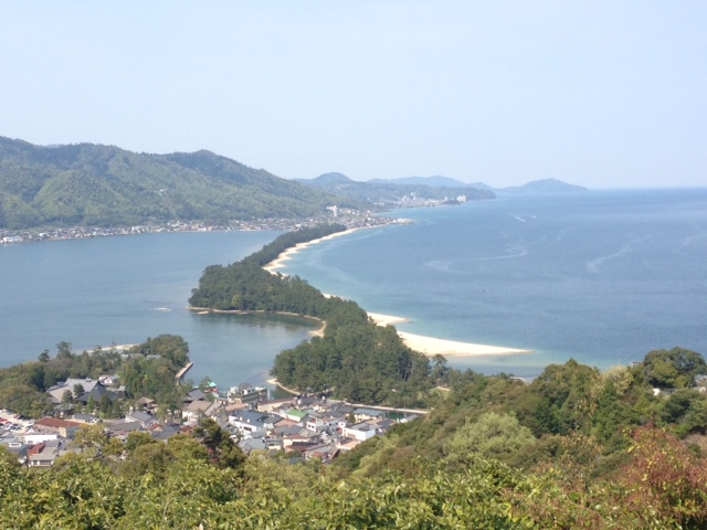 これが、天橋立!天橋立駅近くから、リフトに乗って6分。そこにある、天橋立ビューランドからの眺め。さすがに、キレイでしょう?ちなみにWikiによれば、天橋立は、日本海。宮津湾と内海の阿蘇海を南北に隔て、全長3.6キロメートル及ぶ湾口砂州とのこと。