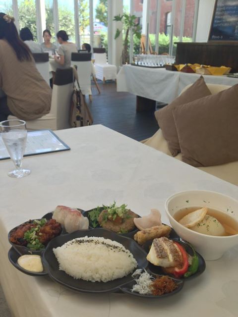 バスセンターの近くに、ちょっとこじゃれたレストランがあった。time after timeという名前。当方はプレートランチを注文。カンパチのカルパッチョ、淡路牛の手こねハンバーグ、地鶏の南蛮フライなどの盛り合わせ。あとはサラダバーが付いていた。