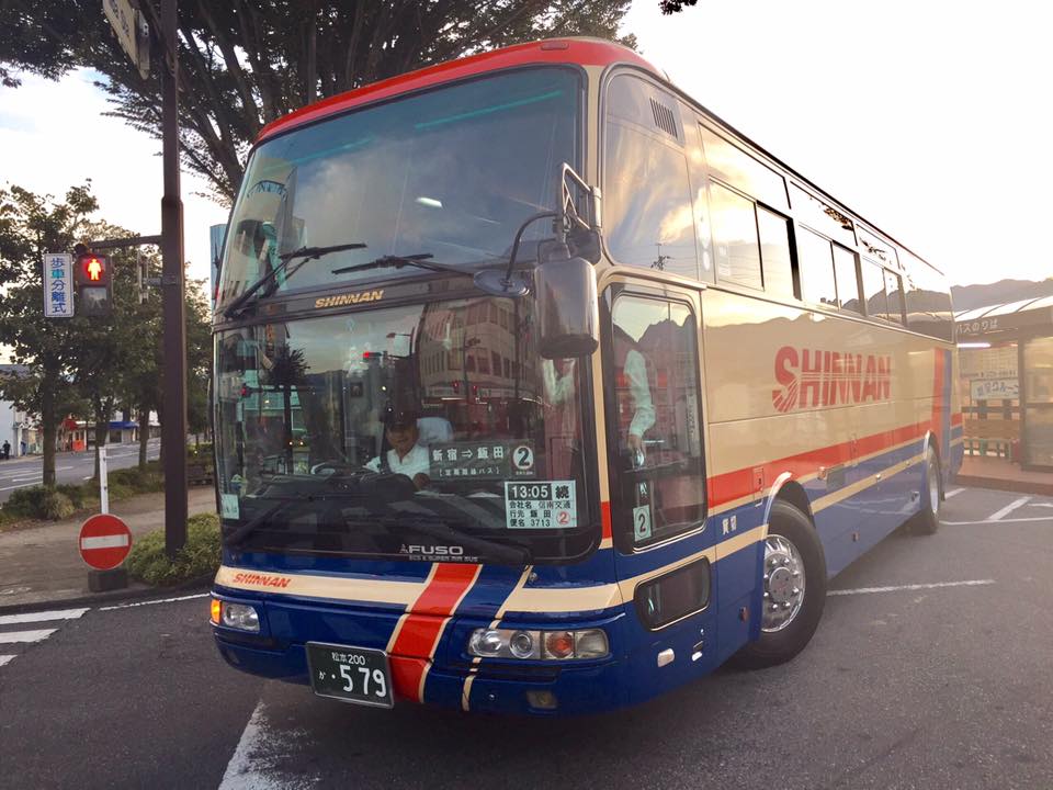 まずは新宿から飯田まで、信南交通のバスで。新宿-飯田間は、テツだと中央本線ー飯田線ととても所要時間が長いが、バスだとショートカットできる。だからバス移動の人が多いんだろな、一日17便もある。ちょっと驚き。