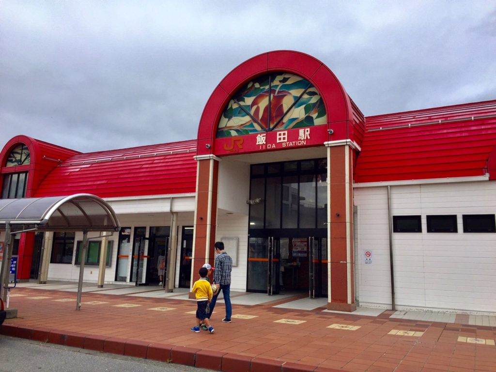 JR飯田駅。意外にもカラフルな色合い。ここには7年ぐらい前に訪れているが、駅舎、変わったな。以前はいかにも、山の中の古びた田舎駅の佇まいだった気がする。