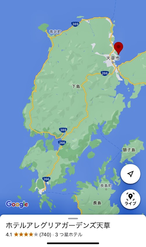位置情報を。このあたりですね。ここからさらに、島原半島南端の口之津港のフェリー乗り場に、レンタカーを進めていきます。次回に続く。