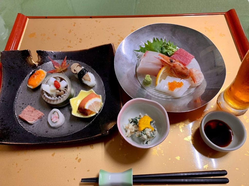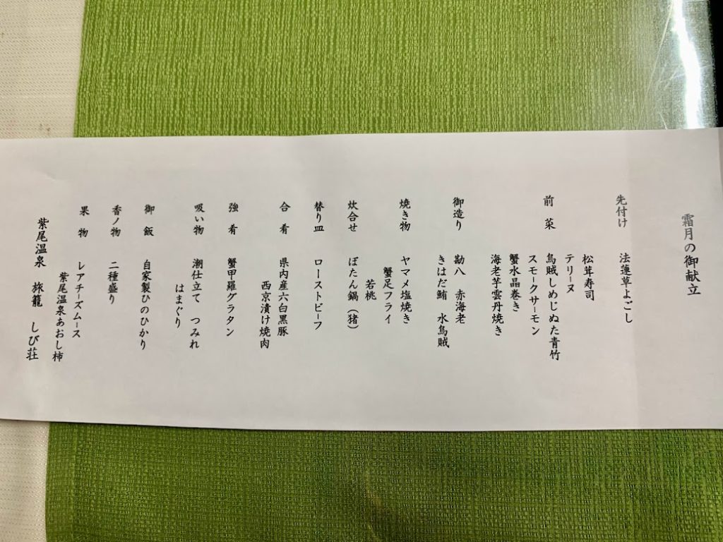 宿の夕餉。最高・・・のはずだが、ここでトラブルが。旅の疲れのせいだな。食欲がない。一日中車の運転ばかりで、体を動かしてないせいなのかもしれない。困ったな。こんなご馳走を前にして。それぞれ、半分ぐらいしか口にできなかった。う~む、宿の方に申し訳ない・・・と思っていたら。
