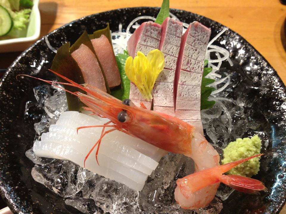 高志会館 旬菜 千歳で、刺身定食を。刺身はイカ、甘海老、富山湾のブリと、カジキの昆布締め。全て地のものらしいが・・・・さすがに、旨かったな。