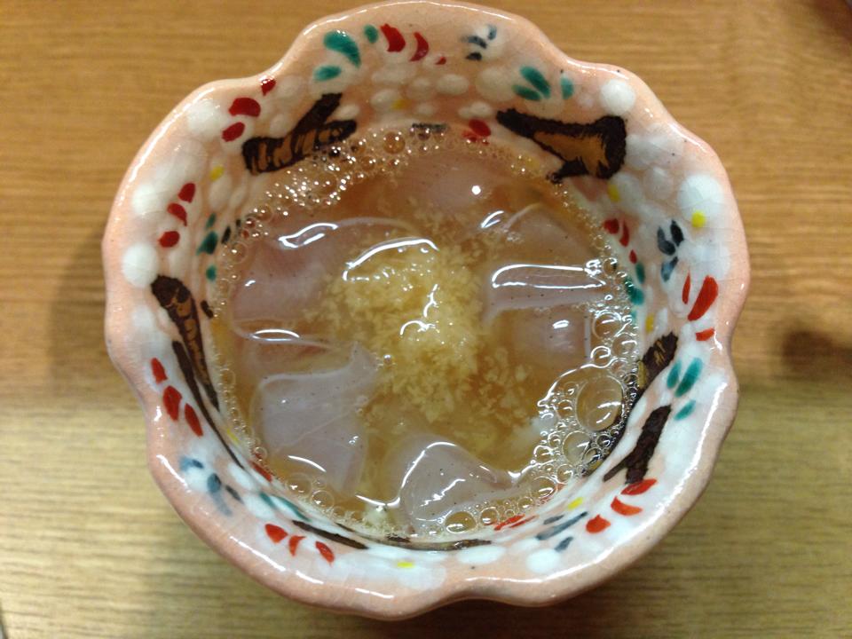 いよいよコース料理との対峙が。まずはアナゴ稚魚の、ほんのり生姜風味仕立て。いわゆる「のれそれ」。う~む。旨し。