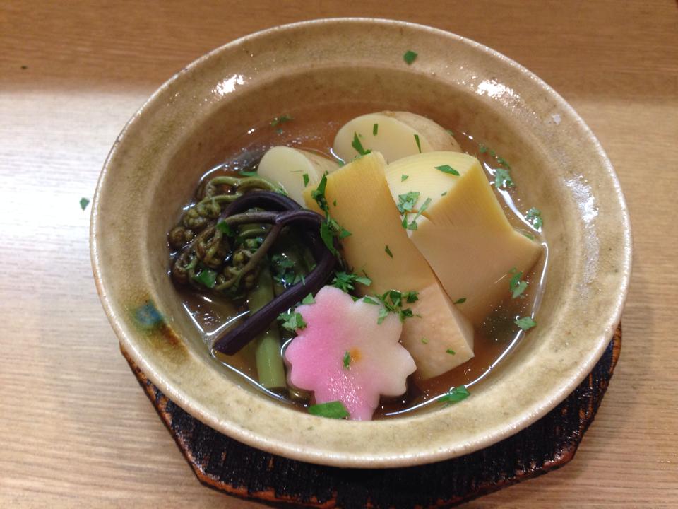 野菜の炊き合わせ。ほんのりとした、上品この上ないお出汁。う〜む。和食が文化遺産登録された所以、わかるような気がするな。