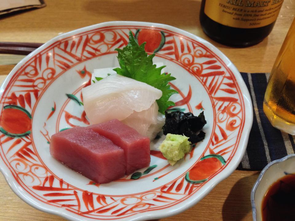 お造り。本マグロの稚魚とまなガツオと。う〜む。しみじみ旨し。「のれそれ」とともに、ビールとよく合う。