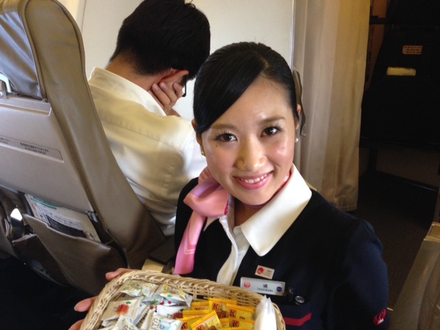 伊丹ー松山便のJALのCAさん。にこやかな方でしたね。