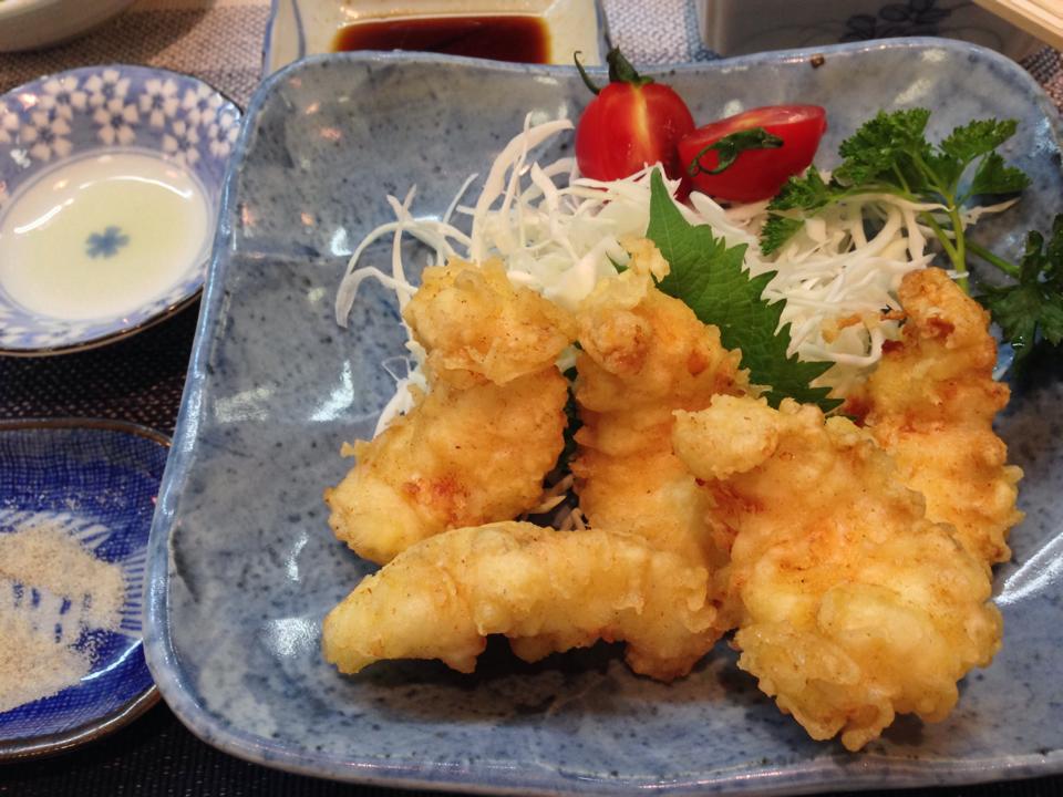 お店の黒板に、ウチワエビの天麩羅と書かれたメニューが。これは実に挑発的。となりの出張族男性に尋ねたら、「これ、イチオシですよ!」と。そうか。食べるしかないな・・・・と、う~む。味は、ほぼほぼ、伊勢エビ。大きな切り身の、あの伊勢エビにも似た弾力ある歯ごたえもたまらない。これはこれは、贅沢だよな・・・・