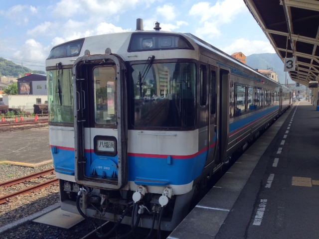 翌朝。天気は昨日と真逆。ついに晴れた!宇和島のホームには、こんな車両も。これは徳島線の、特急「剣山」の車両と似ているが・・・八幡浜行きの鈍行と。なんと贅沢な車両運用であることか。