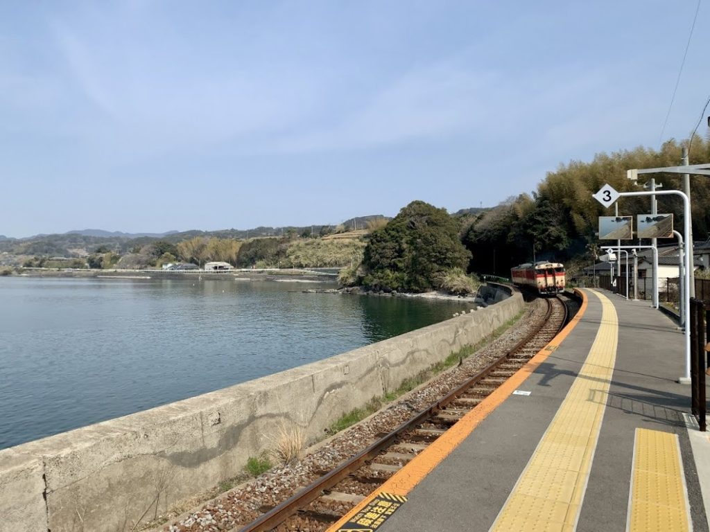 今日はこれから島原に向かうが、長崎自動車道という高速道路経由で行こうと思う。そのためには長崎空港から島原に向かう方面とは逆、少し北上したところに高速の入り口「東そのぎIC」がある。その途中に前回も訪れた、大村線の風光明媚な駅がある。今日は天気がいい。ちょこっと立ち寄ってみよう。