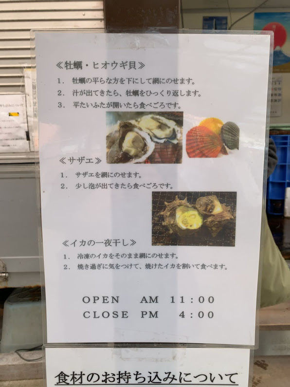 なるほどな・・・自分で貝を焼いて食べることは、北海道は厚岸の漁協で経験済み。私にもできそうだな・・・そう思い、早速お店に。