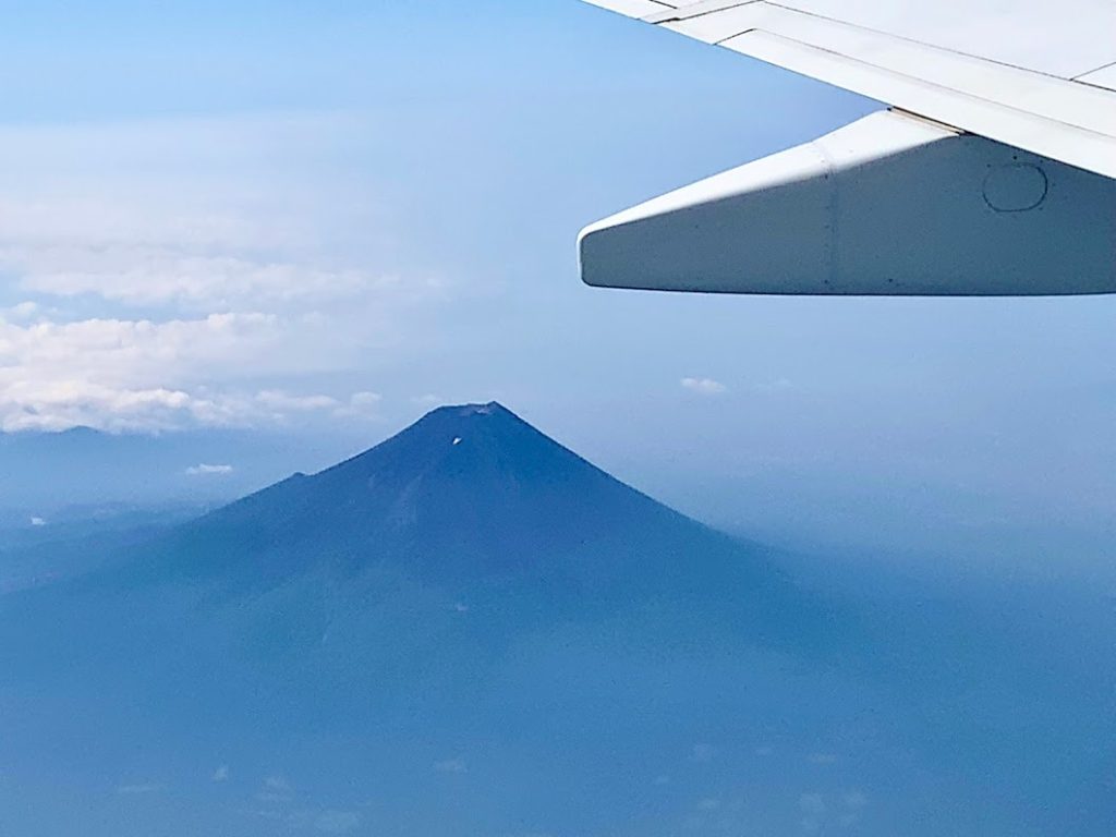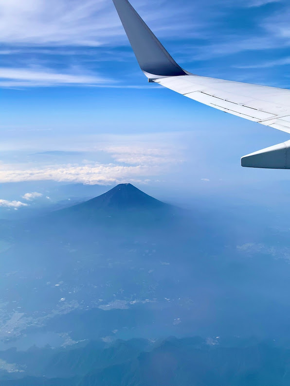 羽田ー広島、 JL 255 便から望む夏の富士。これだけ雪がない富士も珍しいよな。今年は相当暑いのかなあ…