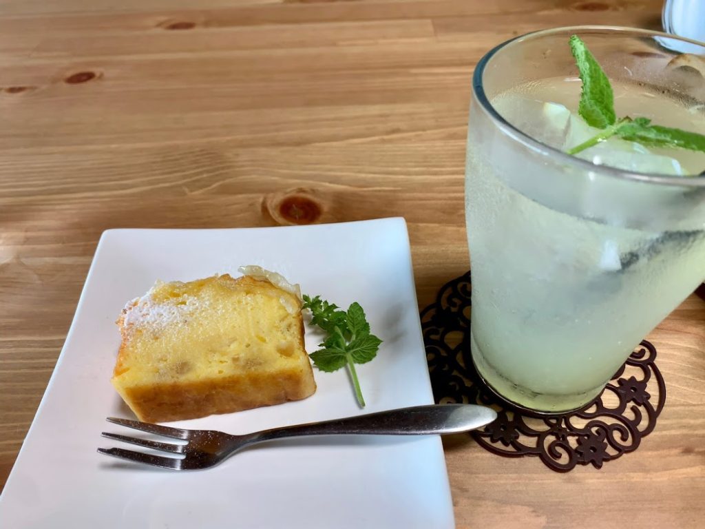 しばらく車を走らせていると、「ブルーグリーン」という、地元の方が古民家利用して営業しているカフェがあった。訪れて聞けば、地の物を使ったレモンスカッシュとレモンケーキのセットがありますよ。いかがですか?と。頼んでみた。美味かったですよ!特にレモンスカッシュが鮮烈だったな。曰く: