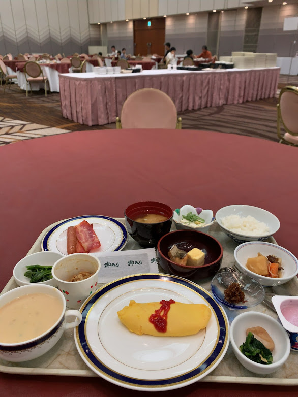 朝食。ホテルは精一杯頑張ってくれているが、3密を避けるため、席のキャパが半分以下なんだろうな。37Fにあるビュフェ会場「レイクビューダイニング・Biona」はすぐに満席。一時間待ちと。