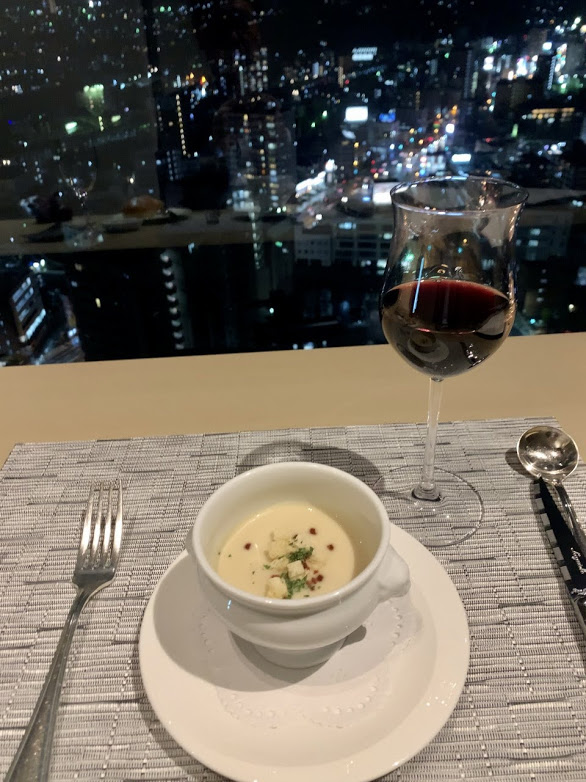 サイコーの組み合わせですねーっ」との声をいただいた。そういうもんかな。女性の感性は。まあたしかに、夜景を見ながらカクテルをいただくというのはよくあるかもしれないが、夜景とフレンチは意外に少ないかもしれない。ここはこのホテルそしてレストランの勝利だな。おススメです。