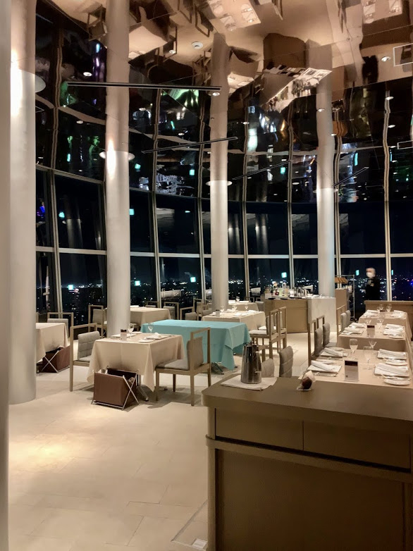 夕餉の時間。今日はフレンチにした。「シエル・アジュール」というレストラン。天井高でいい感じだ。以下、HPに掲載されている、ここの紹介文を。