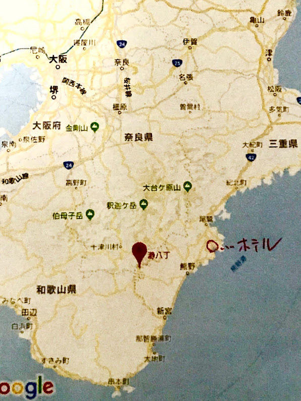 今日の目的地。名古屋が位置している右上から車で南下。亀山を経由し尾鷲までは高速で。そこからは山道を走って吉野熊野国立公園、いつか訪れたかった瀞八丁へ。そこを散策後は尾鷲に向かいさらに少し南下、尾鷲シーサイドビューと言うホテルに泊まる。そんな足取り。