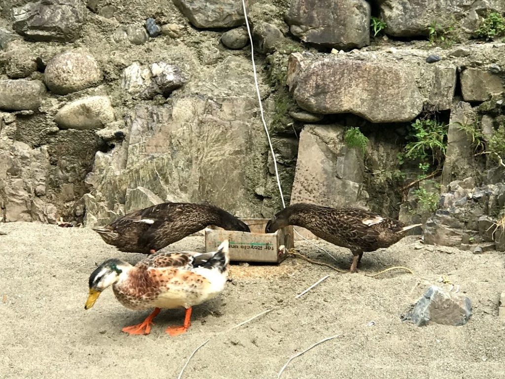 可愛い鴨が三匹。なんと・・これは出来過ぎではないのかと思ったら。餌付けがされてるんだな。だから鴨、あまり人を恐れず、やってくるんだな。微笑まし