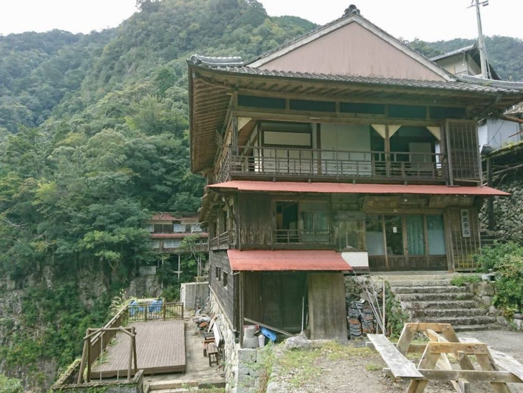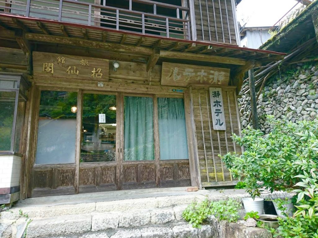 瀞八丁の脇にこんな建物が。瀞ホテルとある。聞けばここは大正6年「あづまや」として開業し、当初は山で切り出した材木で筏を組んで運ぶ「筏師(いかだし)」のための宿だった。その後「招仙閣」と名を変え、昭和初期には「瀞ホテル」という名称となった。