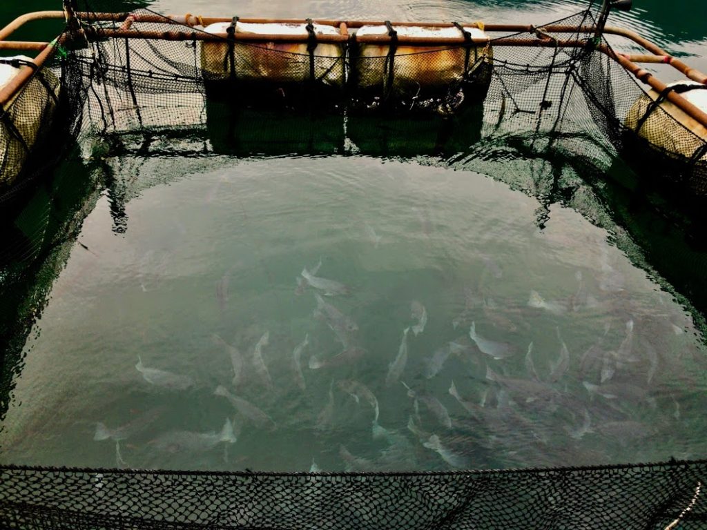 散策に。これは上二つのうち下のほうの写真。左横端にちょこんと小さく見える生簀の中を覗いて撮ったもの。メジナがたくさん泳いでいる。お造りのための魚を生きたままにして泳がしてるんだな。ちょっと感動。