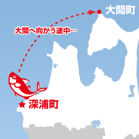 同HPに掲載されているこの地図を見ると、深浦と大間のマグロと同種であることが、よくわかるよな。