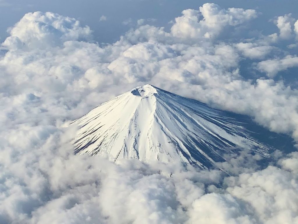 JAL505、羽田ー熊本便から望む富士。JALに尋ねたら、羽田ー熊本便は富士山の真上を飛ぶから、富士山は見えないんですよねとの事だったが。この日はパイロットさんが気を利かしてくれたのかな。飛行機の左側から富士山が見えるように。しかもすごい低いところを飛んでくれた。したがって写真の通り、かなりリアルに見えた。これはツキがあったな。
