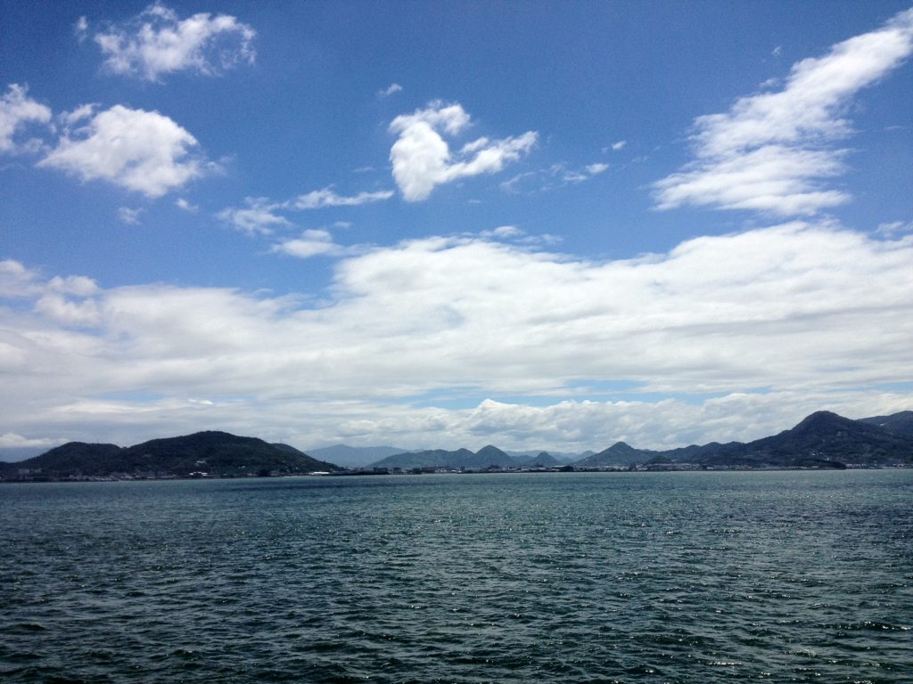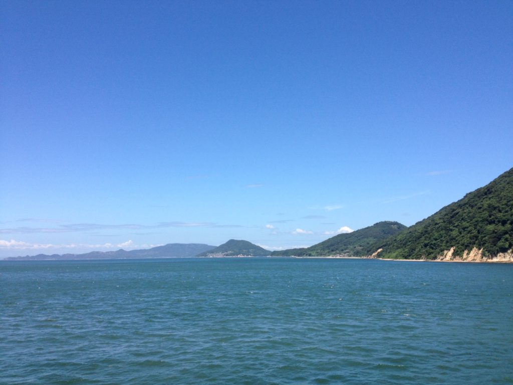 瀬戸内海の船の旅、最高!!空と海の色を受けてか、景色全体に青がかかる。それが実に、良い。