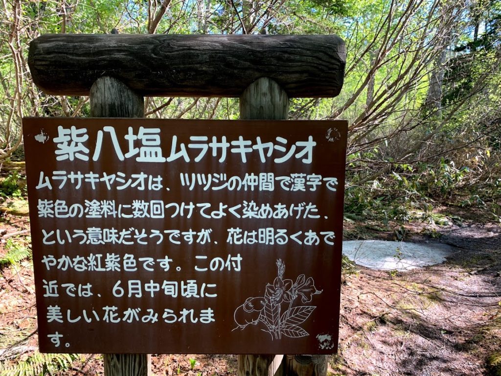 ホテルの向かいにある森の散策道を登っていくと、こんなきれいな花が。これはなにかなぁと思っていたら、こんな看板が。
