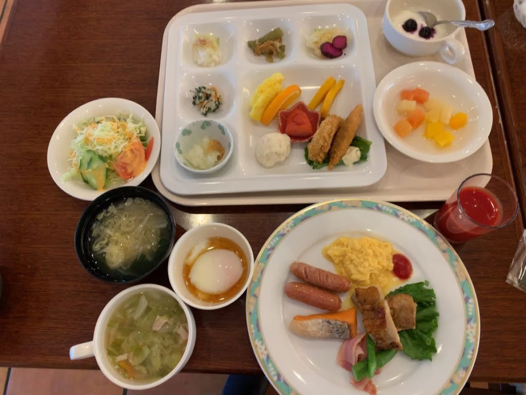 ホテルの朝食。昨日の夕食同様、ビュフェを朝定食の形に盛ってくれていた。変な話だが、自分でやるよりバランスよく盛り付けてくれるから。その点はありがたいよな。あと今さらながらだが、このホテルは新コロを防ごうとの思いが強く、そんな気持ちを込めて、この朝定食を作り上げてくれてるんだと思う。頭が下がる。そしてもちろん、美味しな。