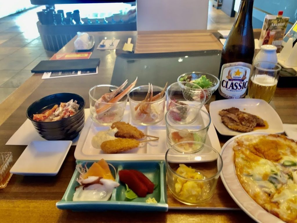 今日の夕食ビュッフェ。色々なものが食べることができてうれしい。この中でも特に、花咲ガニの味噌汁はとても美味しで、お代わりもさせてもらった。