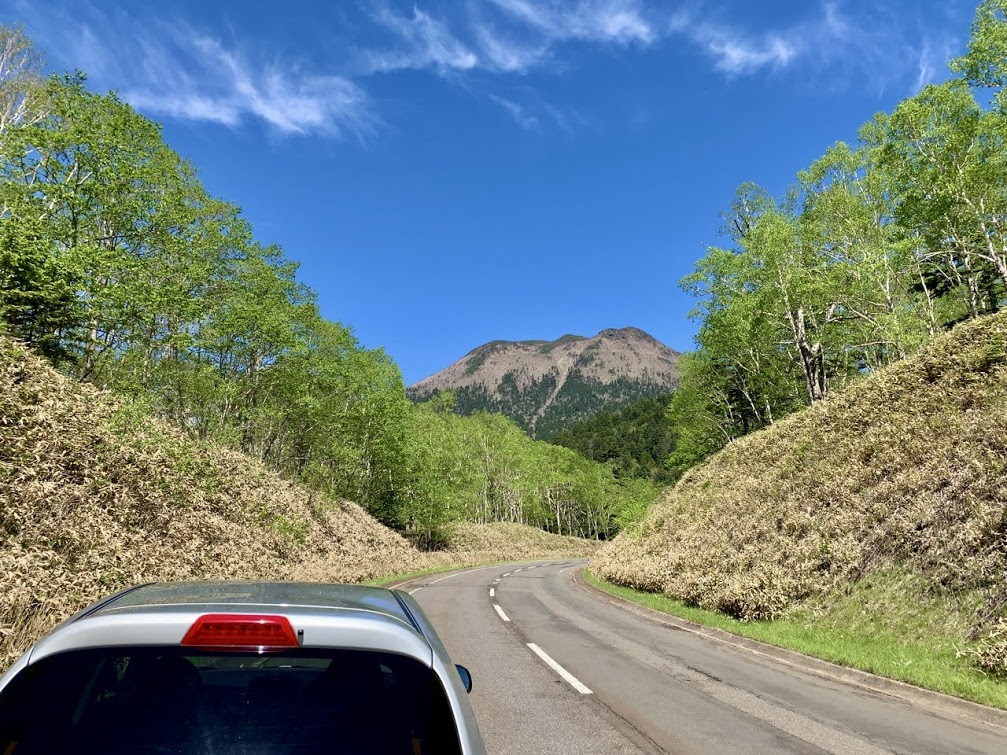 ドライブが楽しみ。車を進めていこう。摩周湖を経由して知床に行く途中、雌阿寒岳が見えてきた。きれいだよな