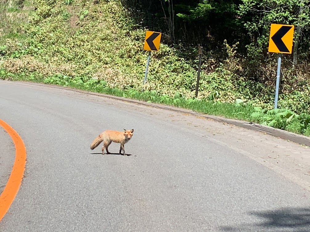 しばらく走ると、やっぱりここは北海道だな。野生のキタキツネが出てきた。ゆっくり写真を撮りたかったけれども、すぐに行ってしまったな。