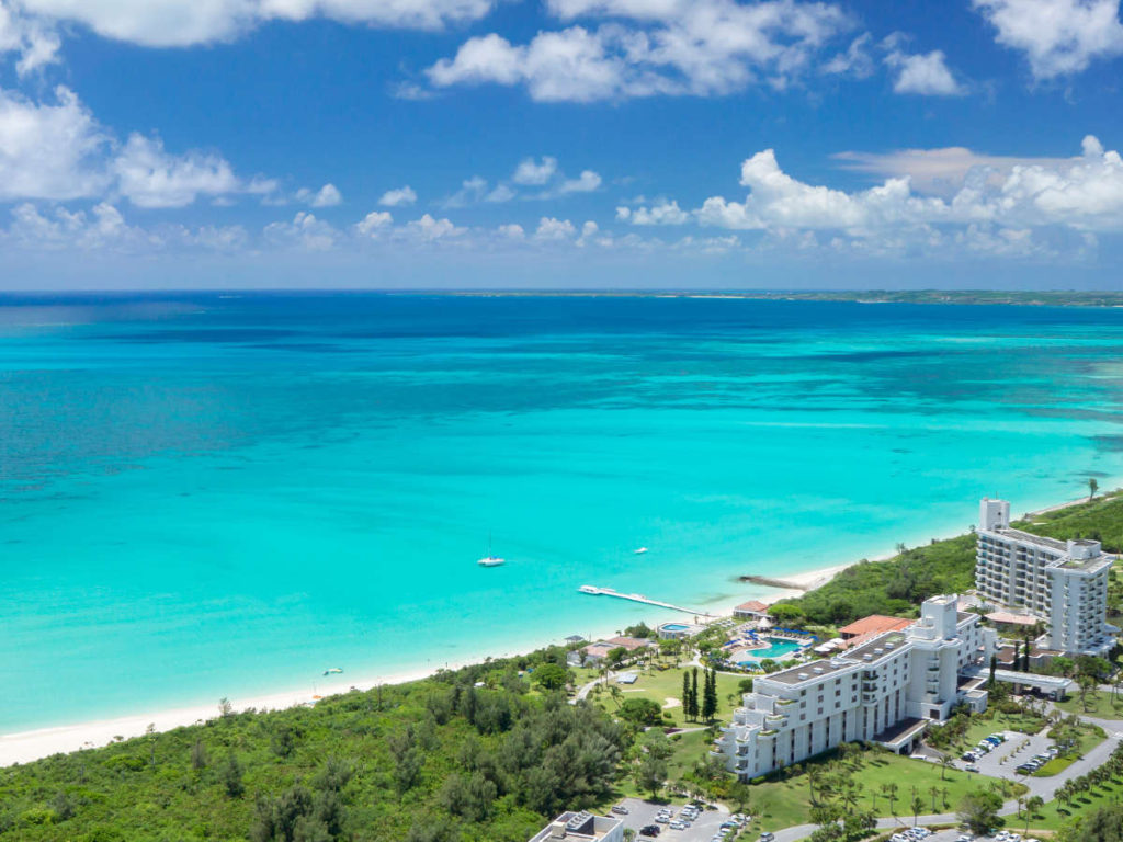 これは「じゃらん」宮古島東急ホテル&リゾーツに掲載されている写真。ドローンで撮ったのかな。俯瞰写真。使わせてもらいますね。確かにこんなイメージ。確かにこりゃ東洋一だな。