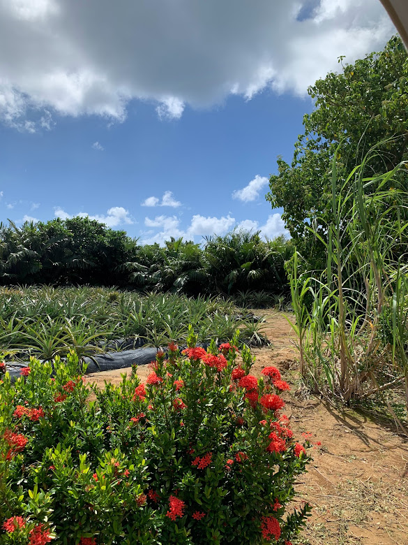 左上はパイナップル畑、右側はさとうきび。宮古島っぽい景色だよな。